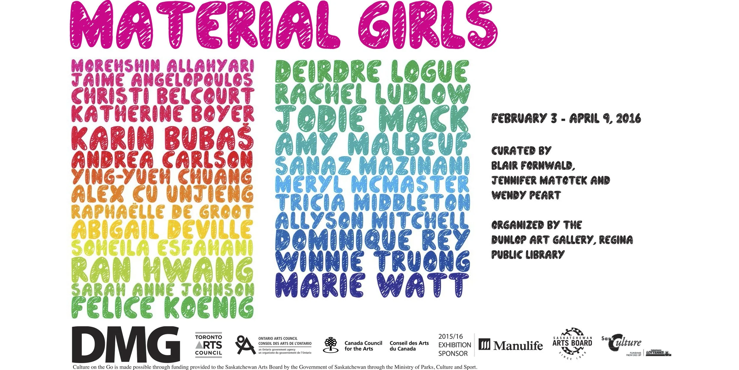 Sharon Alward, Thirza Jean Cuthand, Shawna Dempsey, Nida Home Doherty, Elvira Finnigan, Wendy Geller, Garland Lam, Erika MacPherson, Maureen Medved, Divya Mehra, Lorri Millan, Hope Peterson, Heidi Phillips, Dominique Rey, Nicole Shimonek, Jennifer Stillwell, Reva Stone, Leslie Supnet, Sheila Urbanoski, Lori Weidenhammer